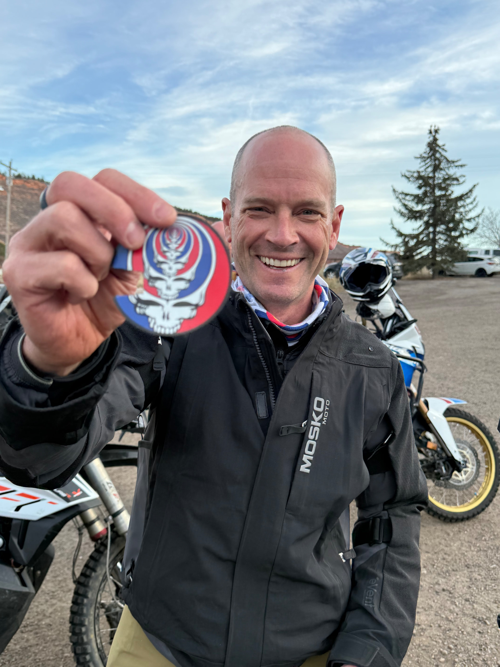 We got back to Chris’s bike, I got on the ground and placed the Grateful Dead magnet against the kickstand sensor. Chris fired the bike up, put it in gear, and BAM. In business.